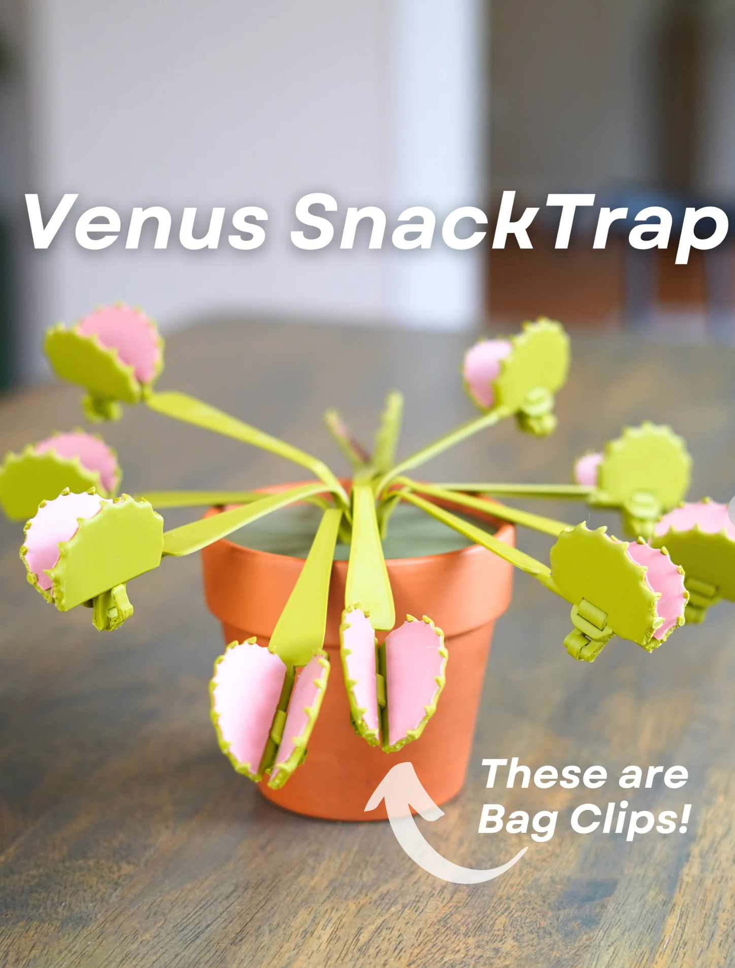 Love the Venus Fly trap, but, like me, can't keep them alive????? Introducing the Venus Fly Trap that doubles as bag clips! The head comes off and helps to keep your snacks sealed for freshness, when done simply return the clip to the plant! Fun and functional! Order yours now!